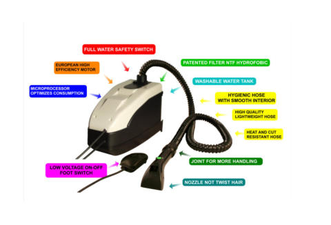 Great in Each DetailWith microchio and software for a greater power control and respect for the environment. Ecological: with Save Energy System electronic system, soft start-system that avoids peak of consumption at start-up. A professional tool with the safety of an appliance. In Class 2 of electrical insulation, It does not require an earth connection. Without electrified buttons. Pedal ignition. No resistance or electrical part on the handle which can be dangerous given the presence of water. Furthermore, the power supply wire inside the tube can block dirt. NTF filter with Nanotechnology. European high-performance motors. With the best plastics: Metal appliances can carry electric shocks.