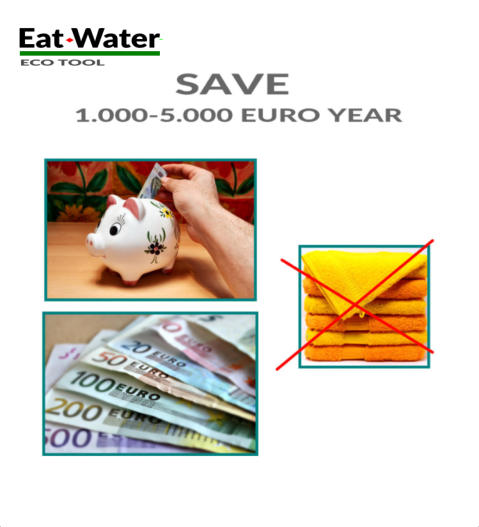 EcoFriendly -Co2 It removes water from your hair without usingtowels and leaving the technical department clean. STOP THE USE OF TOWELS. STOP THE WASTE OF TIME TO MANAGE THEM. STOP using energy to wash and dry them. STOP consuming water to wash themReduces the drying time. STOP the loss of performance to do the laundry of the towels. SAFEin class 2 double insulation without earth cable.Ignition with non-electrified pedal button. Eat-Water® is equipped with a safety float that blocks suction when the drawer is full. NTF filter that cleans the sucked air.A professional product with the safety of an appliance. In Plastic material: Metal appliances can transmit dangerous electric shocks.